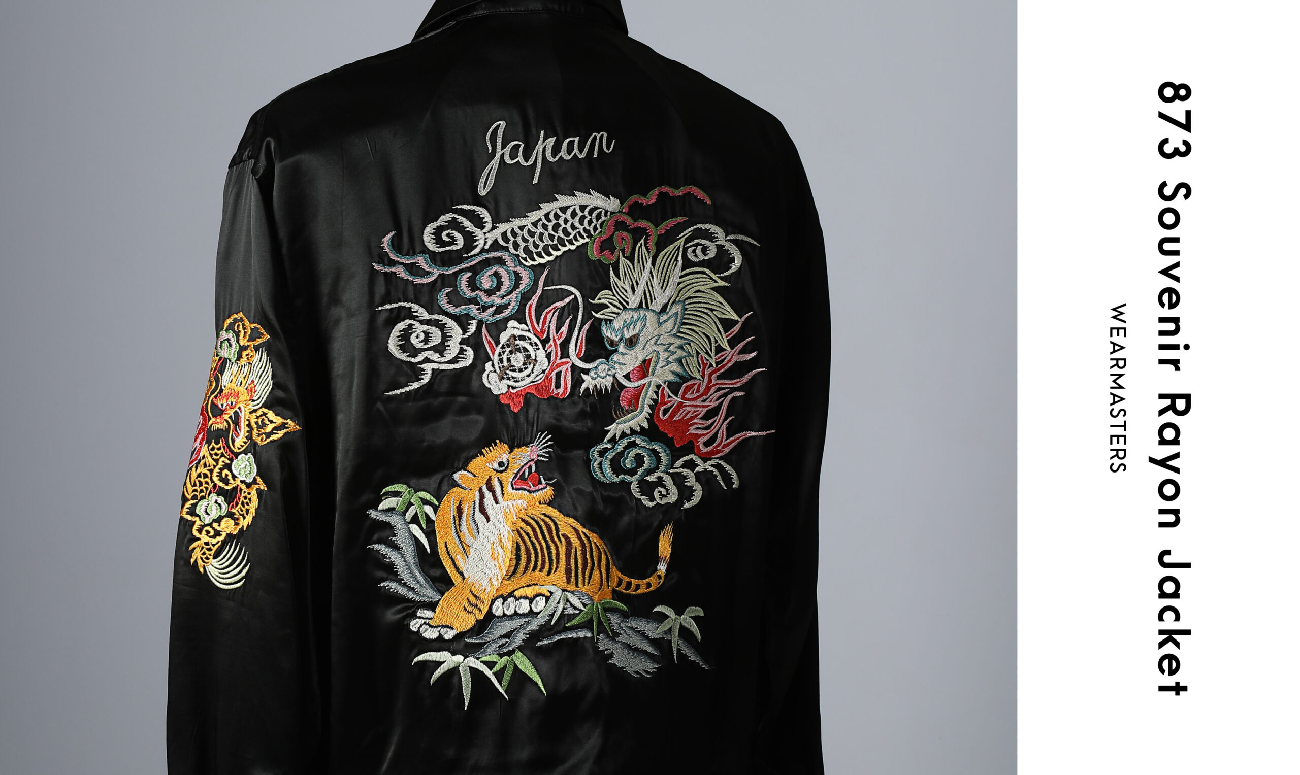 手振りミシンによる職人技が光る、迫力ある刺繍のスーベニアジャケット。 繊細なグラデーションと重層的なステッチワークがモチーフに奥行きを与える。 ボディには軽やかなムラ感のコットンファブリック、ライニングには光沢のあるレーヨンサテンを使用。 身幅が広くショート丈のクラシックなボックスシルエットで、ヴィンテージの雰囲気を表現。 ストレートスライダーのUNIVERSALジッパーとハンマー加工のドットボタンでクラシカルな仕上がりに。