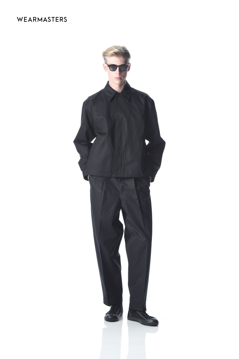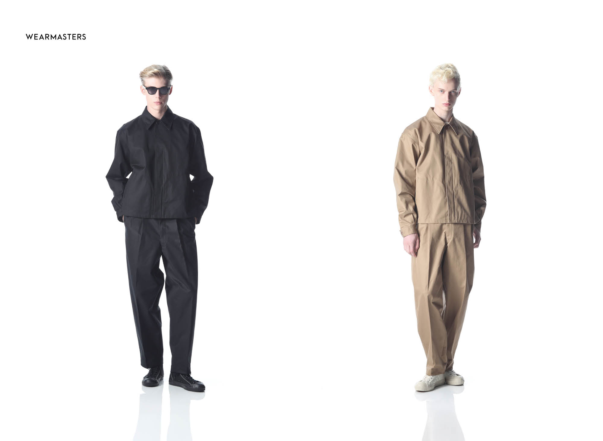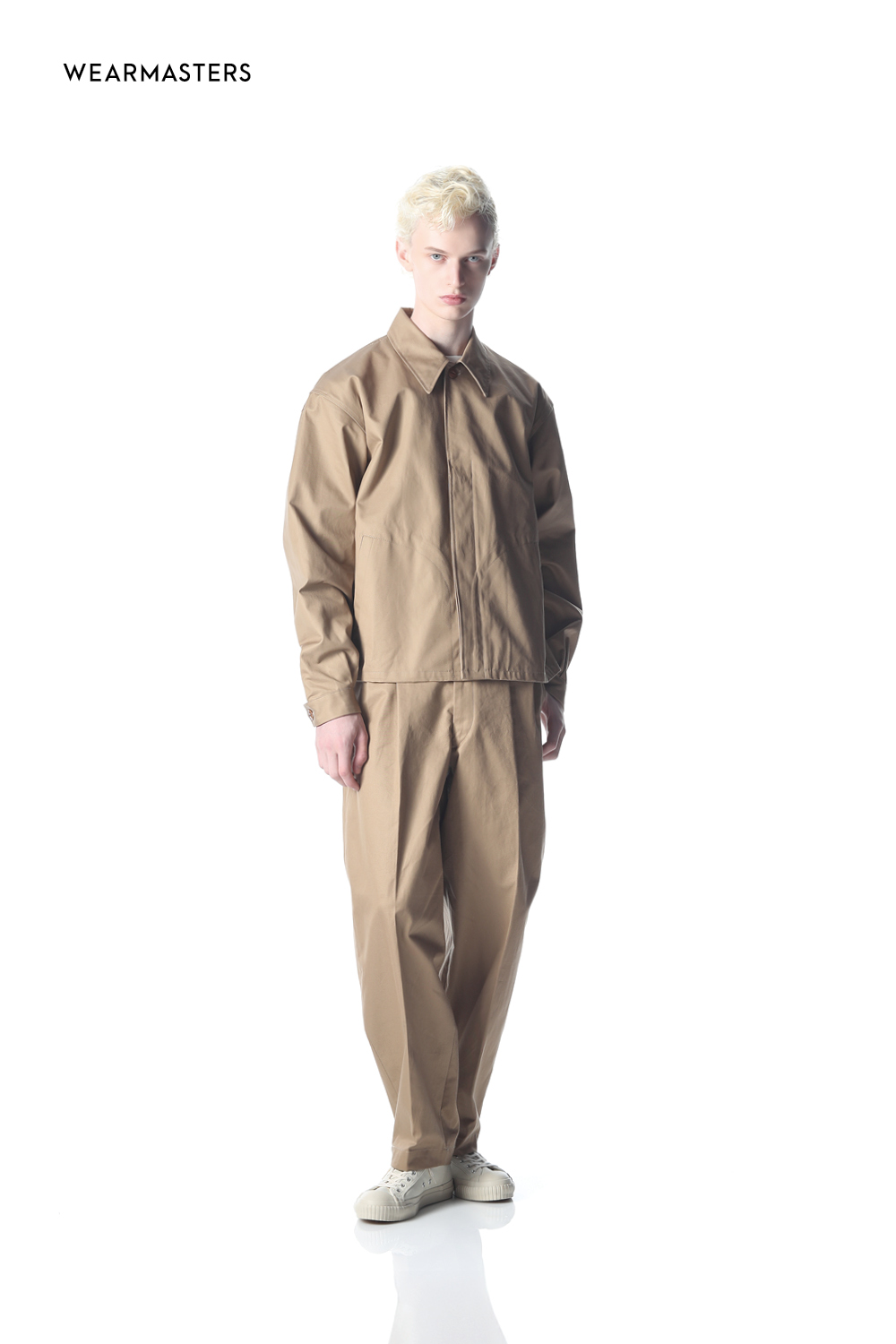 A simple work jacket and double-pleat pants crafted from premium 40/2 Ventile gabardine. Achieves the perfect balance of relaxed ease and refined sophistication. The blouson features vintage-inspired twin-needle chain stitching (6.2mm spacing) on the inside seams, paired with classic corozo nut buttons in a button-fly closure. Unlined single-layer construction for exceptional versatility across a wide range of styling options. The pants boast a shorter length with a wide tapered silhouette. Thoughtfully detailed with twill tape reinforcements, zipper fly, and corozo nut button on the left back pocket—every element finished with meticulous care.